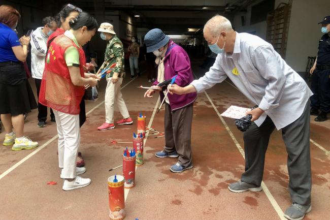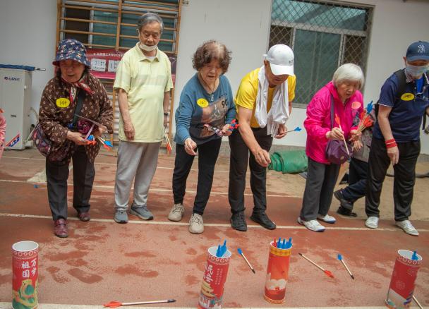 套圈项目考验了老同志们的眼手协调和反应能力,体现了他们的敏捷协调及灵活巧妙。