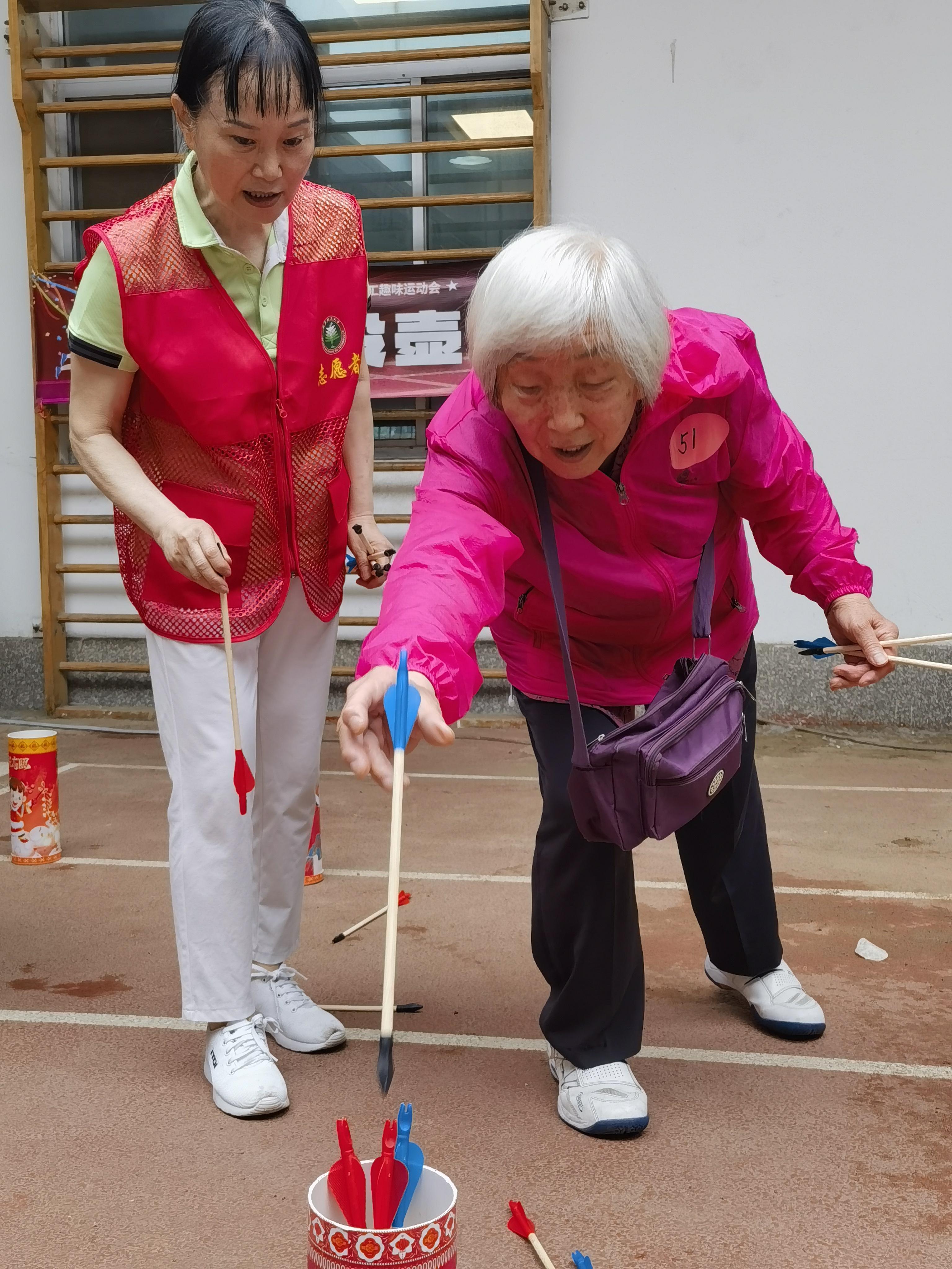 趣味投壶项目考验了老同志们的眼力和手力,也体现了他们的智慧和技巧。