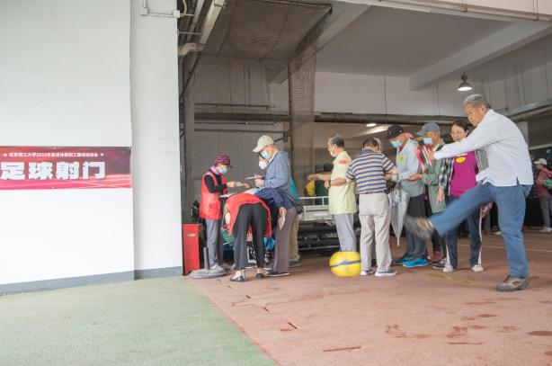 足球射门项目考验了老同志们的脚法和力度控制,展示了他们的技巧和果断。