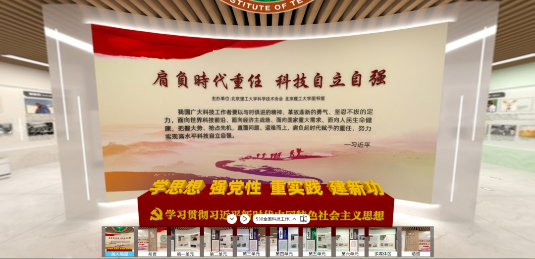 习近平总书记多次谈到科学家精神是科技工作者在长期的科学实践中积累的宝贵精神财富。为庆祝第七个全国科技工作者日,图书馆与校科协联合在“肩负时代重任 科技自立自强”展览基础上开发了VR虚拟展厅,希望通过本次展览让更多的青年一代感受到科学家精神,为加快建设世界科技强国,实现高水平科技自立自强汇聚起更加澎湃的动能。