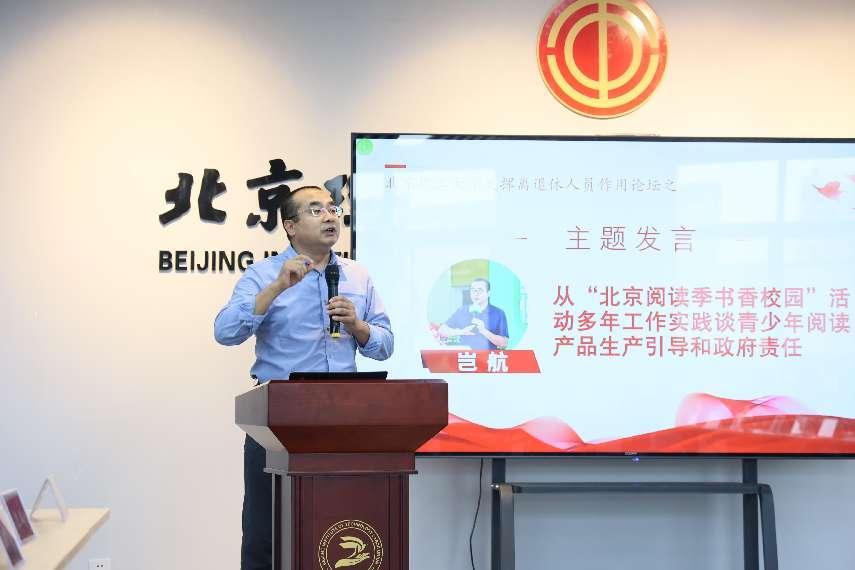 此次论坛特别邀请了北京阅读季金牌阅读推广人岂航,北京市语文骨干教师、某国际学校执行校长、自媒体教育人张静,北京广播电视台《读书俱乐部》《老年之友》制作人、主持人宏玖,北理工关工委老党员读书会老同志代表进行会议专题发言和交流发言。