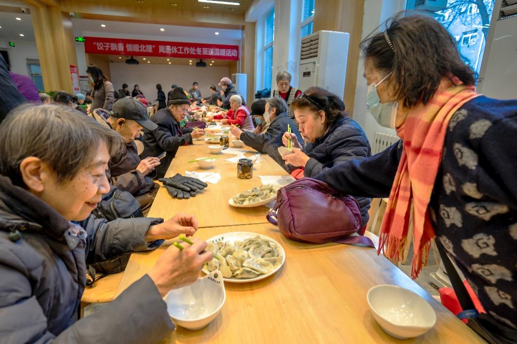 老同志们围坐在一起,品尝着自己亲手包的饺子,配着为此次活动特别泡制的腊八蒜,幸福的微笑挂在脸上,给这个寒冷的冬日注入了浓浓的温情。